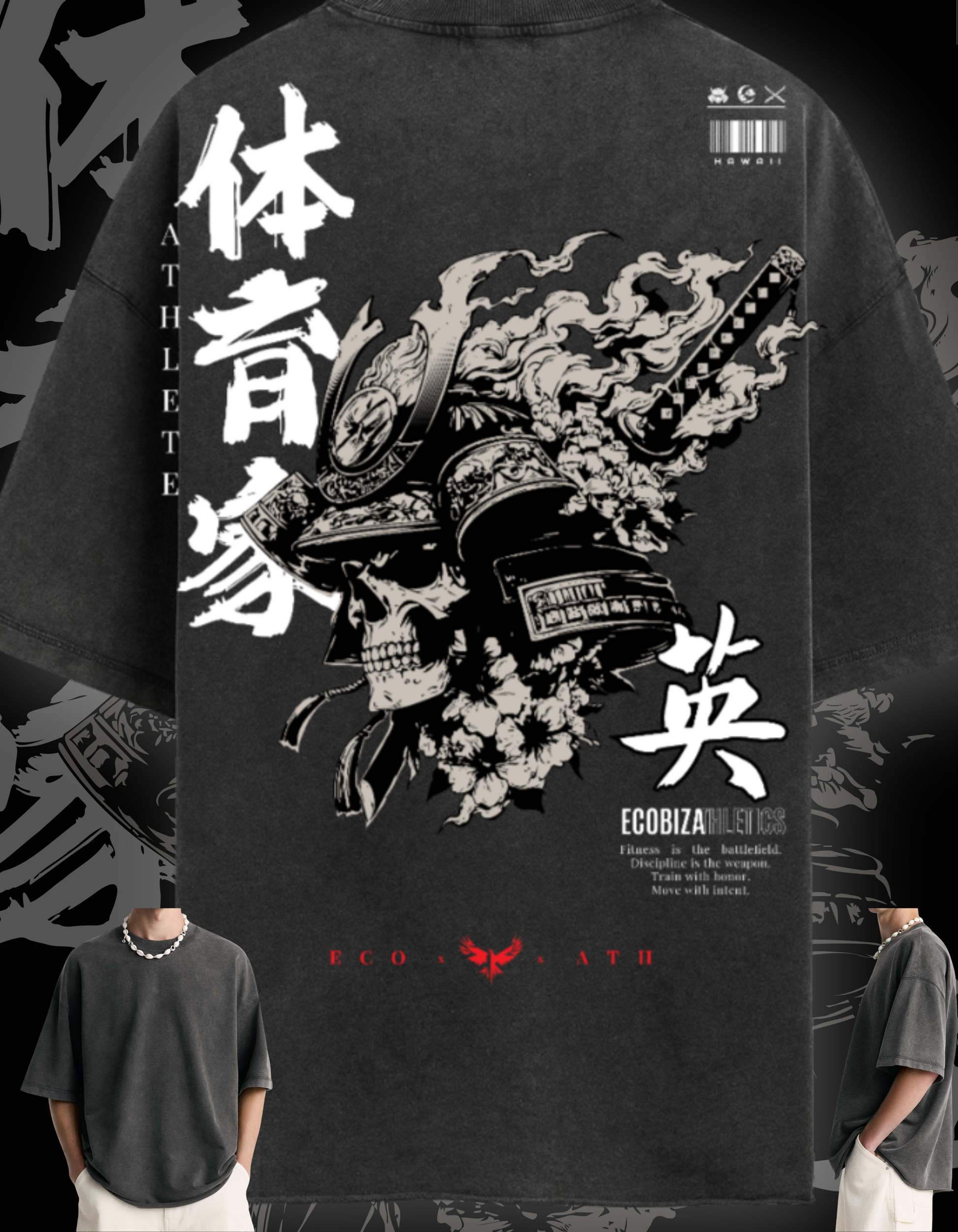 The Death Before Dishonor Tee isn’t just a shirt—it’s a statement. Featuring a striking skull-in-samurai-helmet graphic on a clean, washed Obsidian Fade canvas, this heavyweight oversized tee is made for lifters who want all eyes on them the second they walk in.