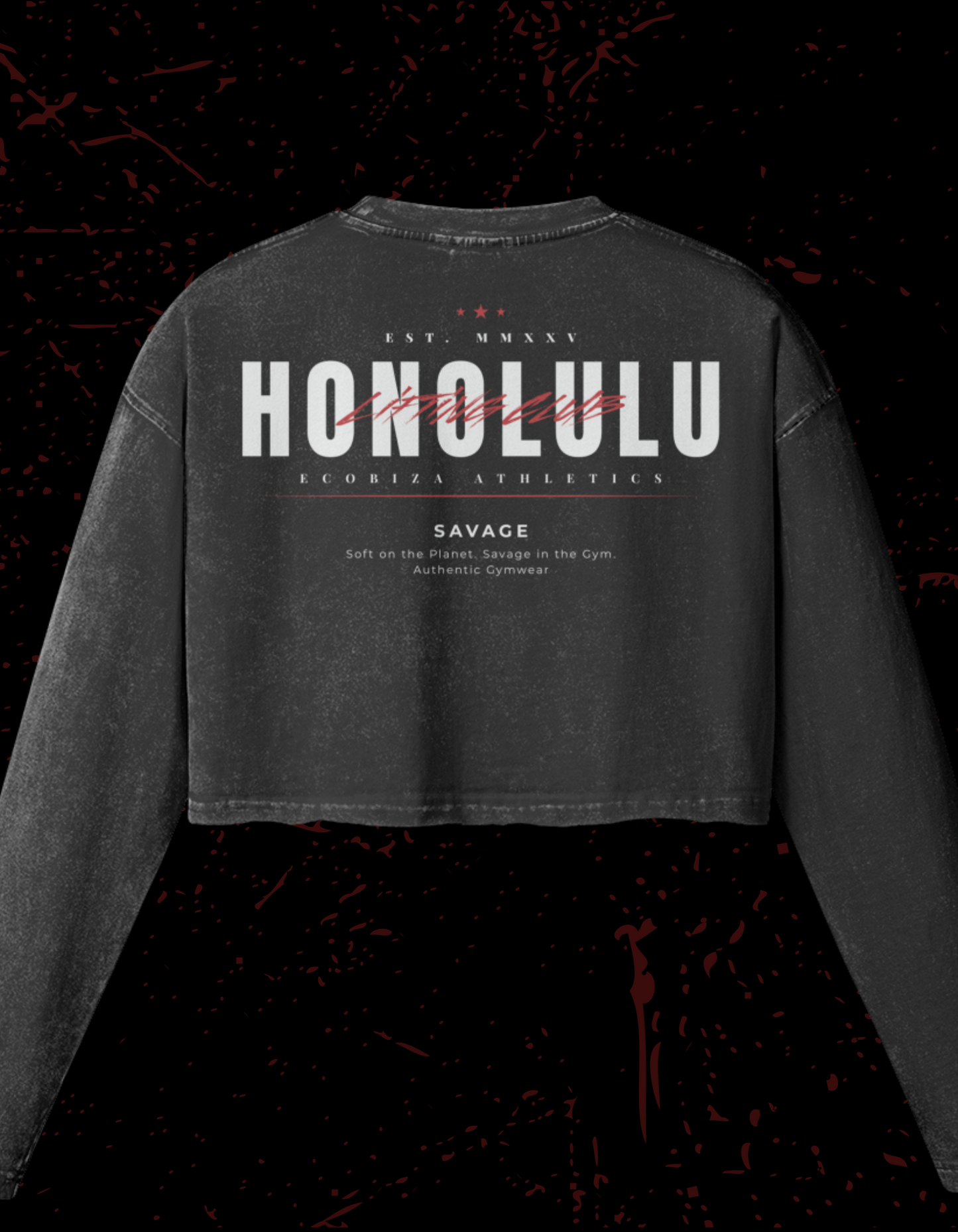 Where movement meets elegance — this premium cropped long sleeve tee is designed to flatter your figure and elevate your wardrobe. Crafted from luxuriously soft, breathable 100% combed cotton, it drapes gracefully with a subtle structure that feels as beautiful as it looks. The raw hem and softly faded wash create a lived-in sophistication, while the midriff-baring cut defines your shape with confidence and poise.