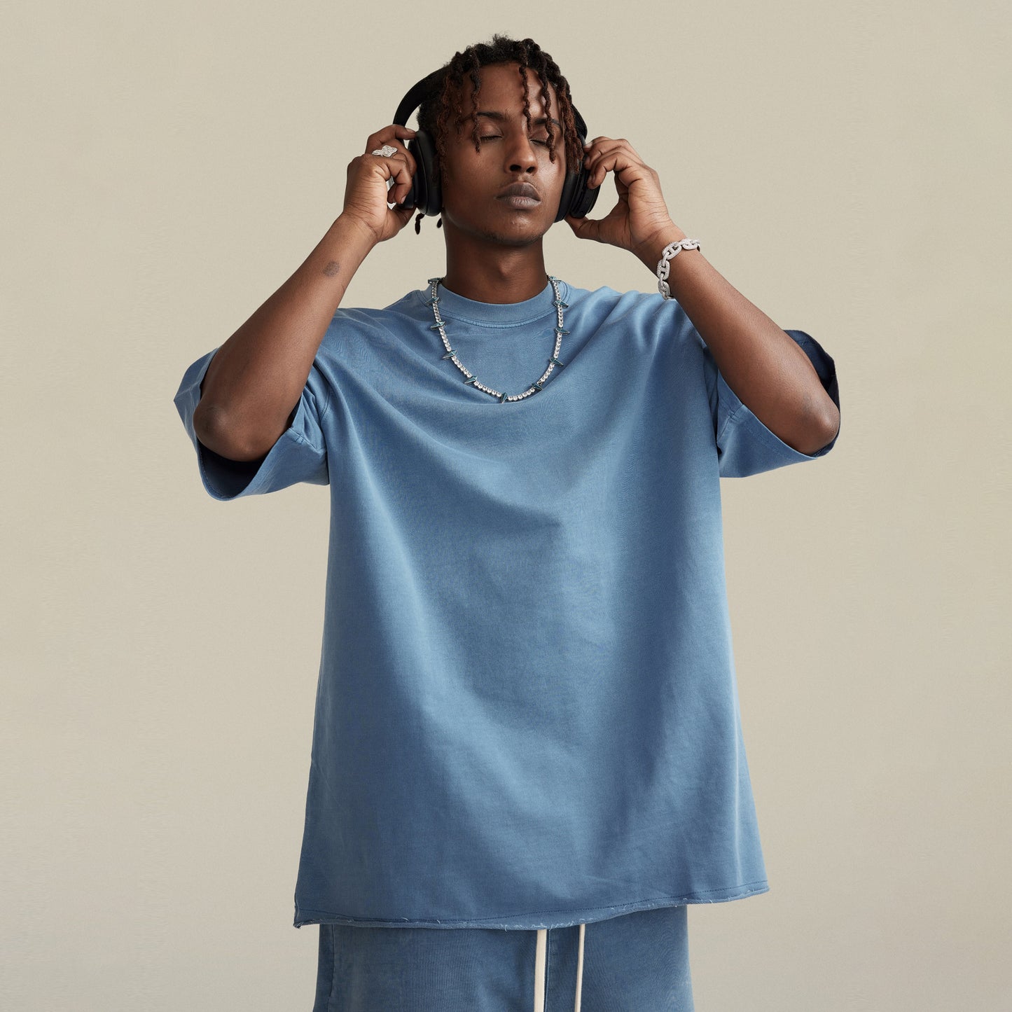 This vintage-inspired oversized tee is built for both gym sessions and street missions. Designed with a raw edge hem and drop shoulders, it delivers a bold, relaxed silhouette that moves effortlessly from lifting heavy to lounging easy. Made from heavyweight 100% combed cotton, it’s breathable, moisture-absorbing, and soft against the skin — whether you’re grinding it out or just kicking back. The pre-washed and distressed fabric gives it a worn-in, timeless look with a premium drape that never goes out of style.